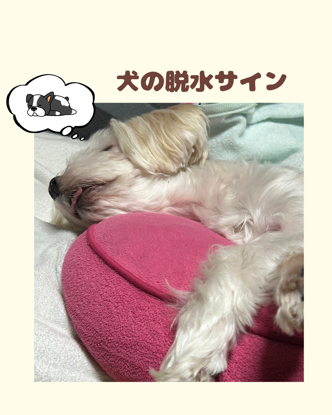 いつもより寝ている時間が多いと感じたり、散歩や遊びにあまり反応しなくなったりしたときは、水分が十分に取れてるか確認してみてください。